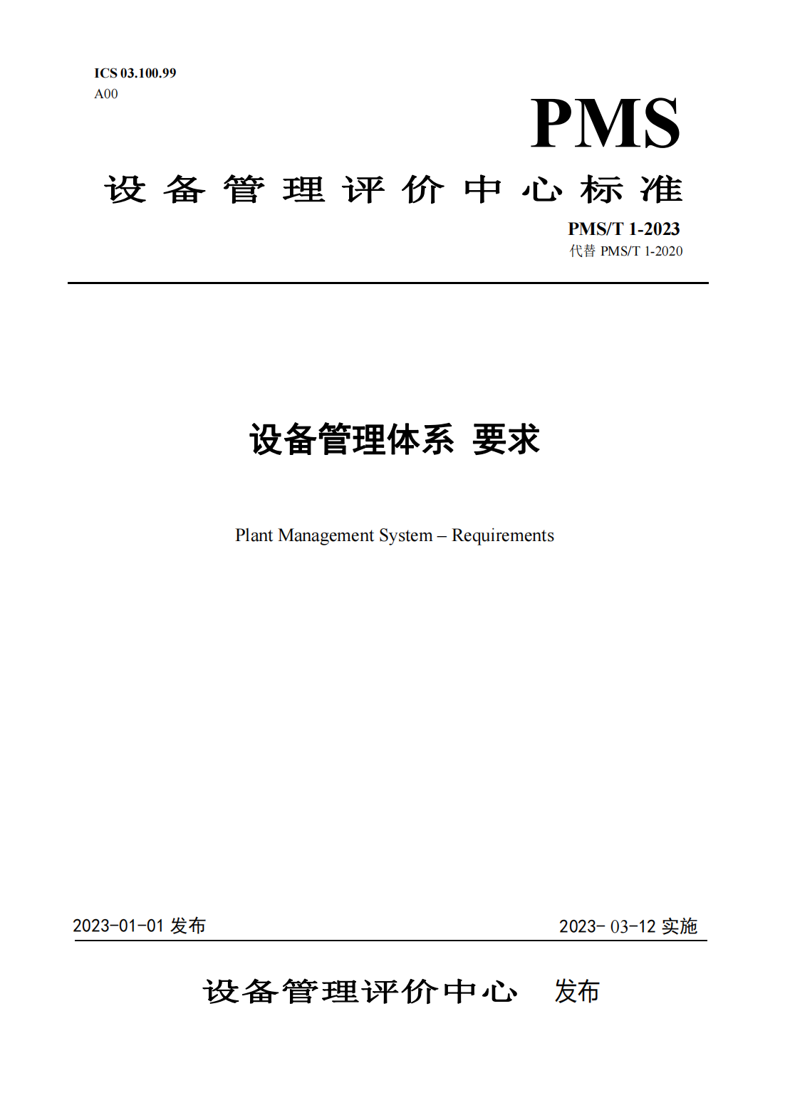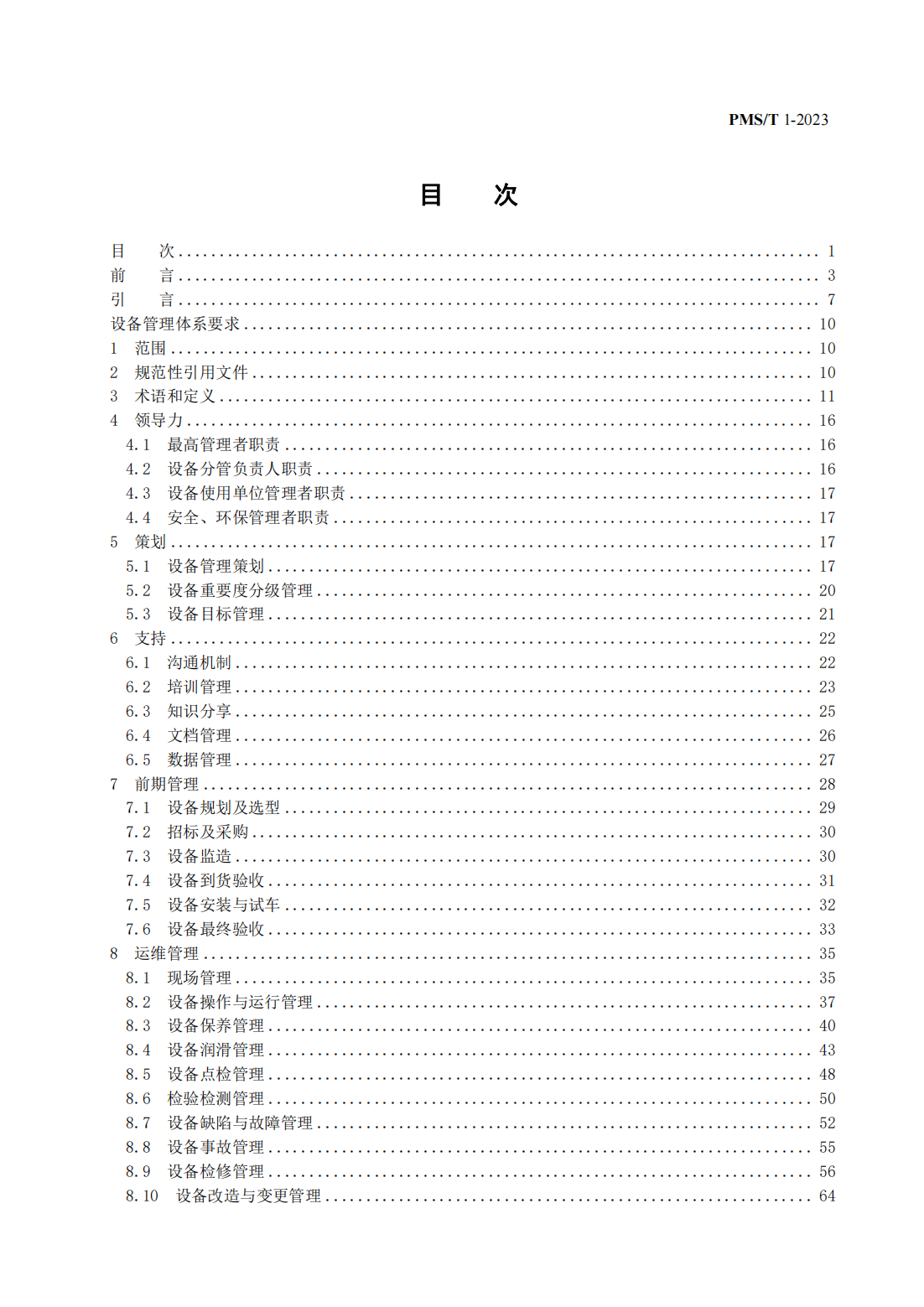 《設備管理體系-要求 》PMS /T1-2023