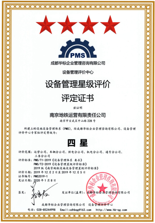 5.南京地鐵設(shè)施設(shè)備管理星級(jí)評(píng)價(jià)榮獲四星級(jí)