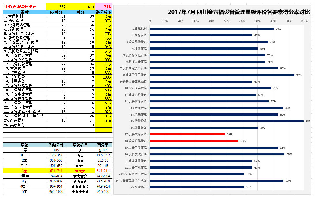 3).對推進了多年TPM的企業(yè),通過設(shè)備管理星級評價,可明確下一步在設(shè)備管理方面的改進與努力的方向;