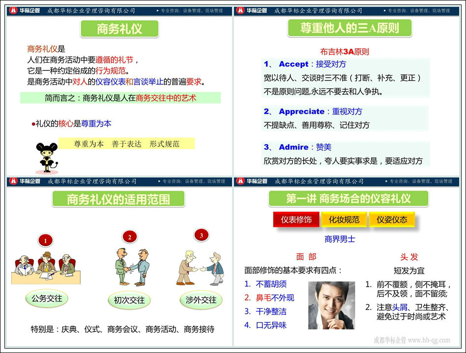 1、本課件屬于職員行為素養培訓課件,可免費提供給成都華標企管的內訓客戶、項目咨詢客戶。 (曾內訓過的典型客戶:中遠船務集團 等企業)