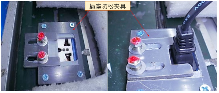工裝板插座防松夾具裝置對插頭松動有較好的改善效果,此裝置不僅對插頭有較好的防松效果,同時延長了插座的使用壽命。改善小組一致同意在其它線進行推廣使用。