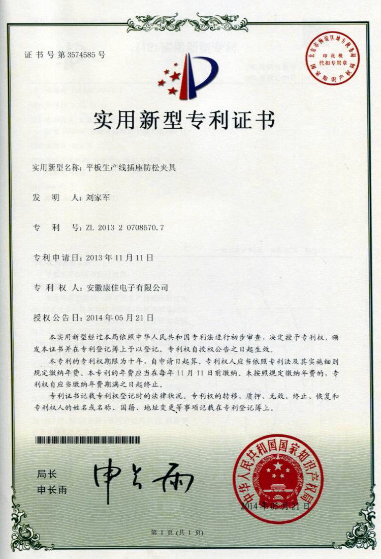工裝板插座防松創新獲得國家知識產權局授權“實用新型發明專利”。專利號:ZL201320708570.7
