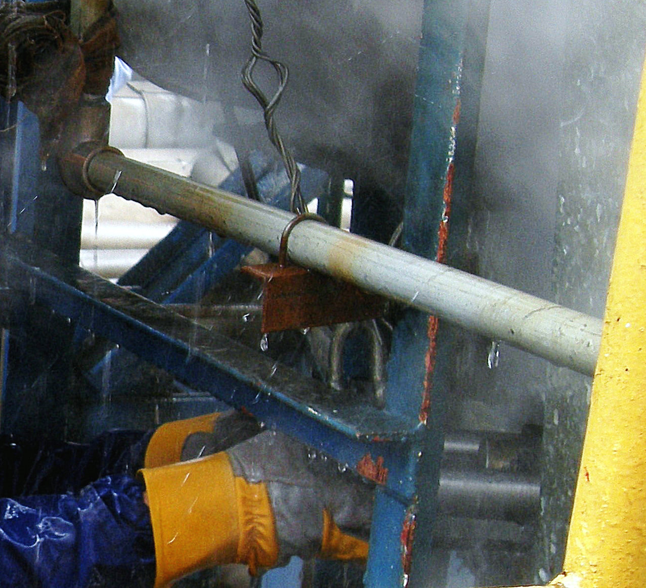 2.空間狹小,高溫水汽彌漫,噪音大,帶夾具作業難度極大,如有不慎,將發生人員燙傷事故。