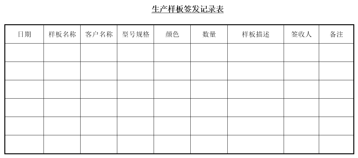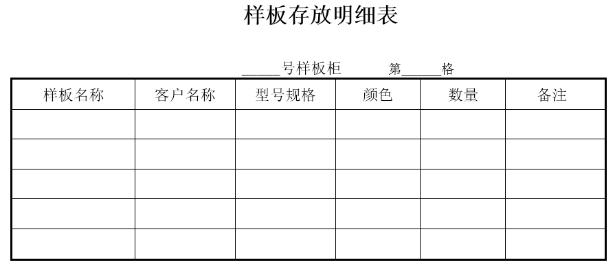 4.1.4所有樣板收到后,需經部門負責人統一移交樣板管理員處,樣板管理員接收樣板必須登記,并將不同類型分開錄入不同登記簿。