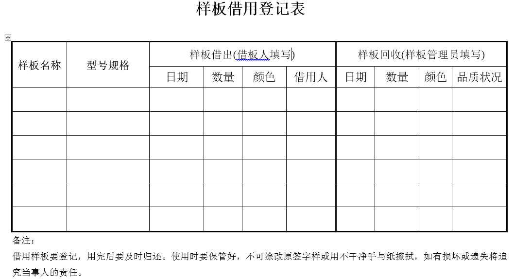4.4.3借用人員在使用期間,對樣板應加強保管,以防遺失或損壞,并及時歸還樣板。