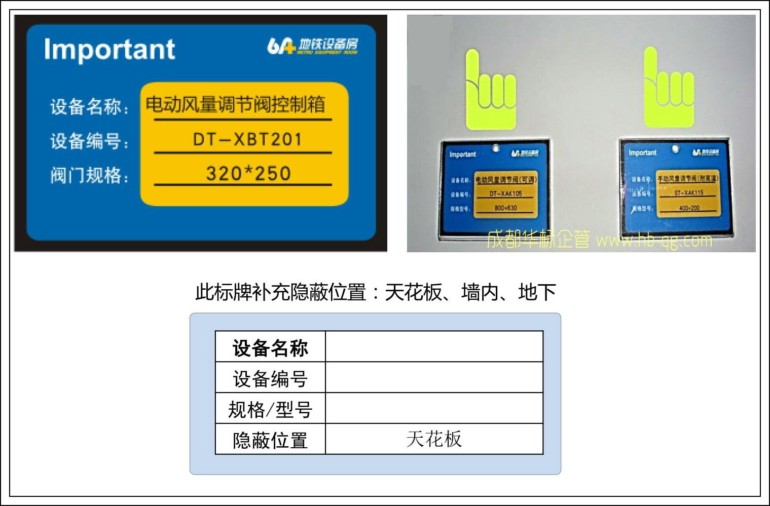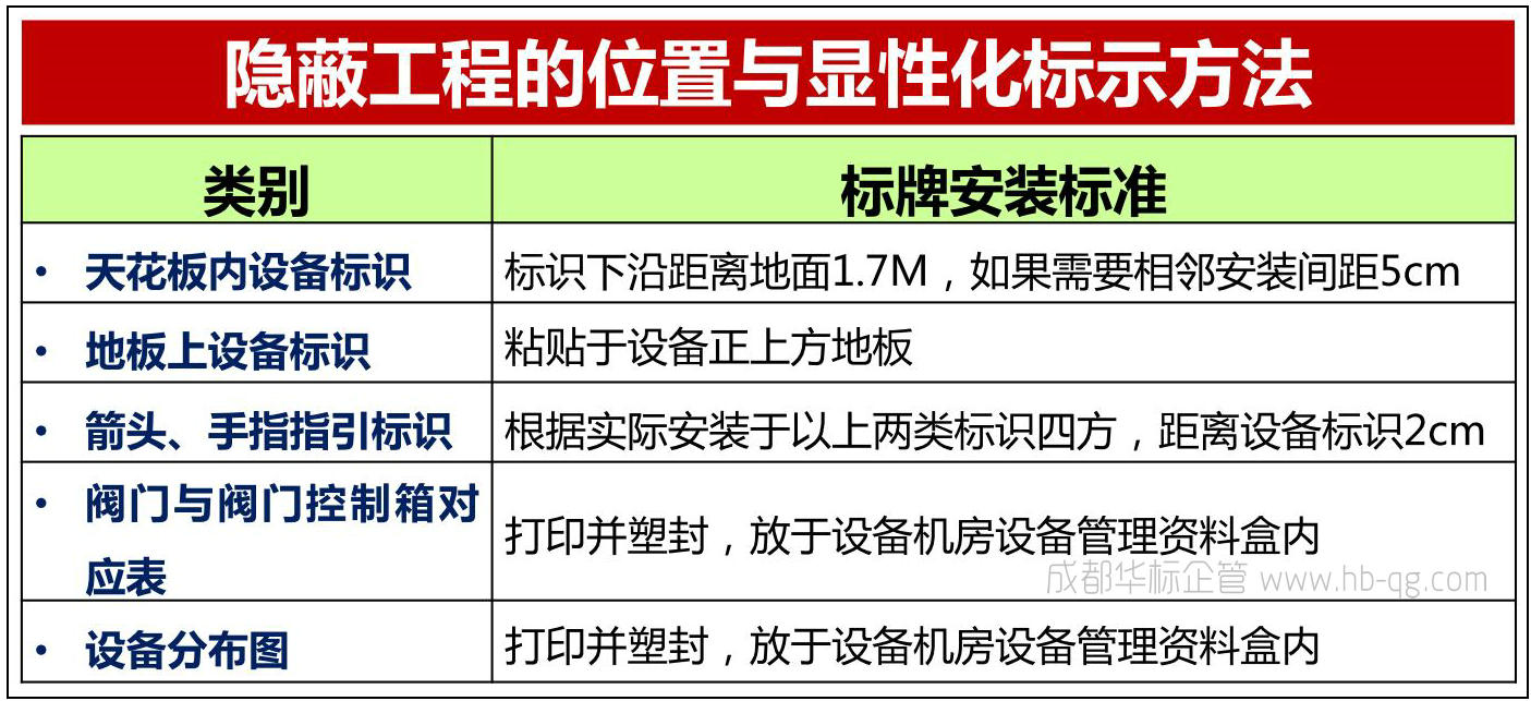 4.根據清單制作隱蔽工程對象的標示卡,按步驟1的策劃,將標示卡貼于相應的位置,要點是一看卡就知道隱蔽工程對象的具體位置。