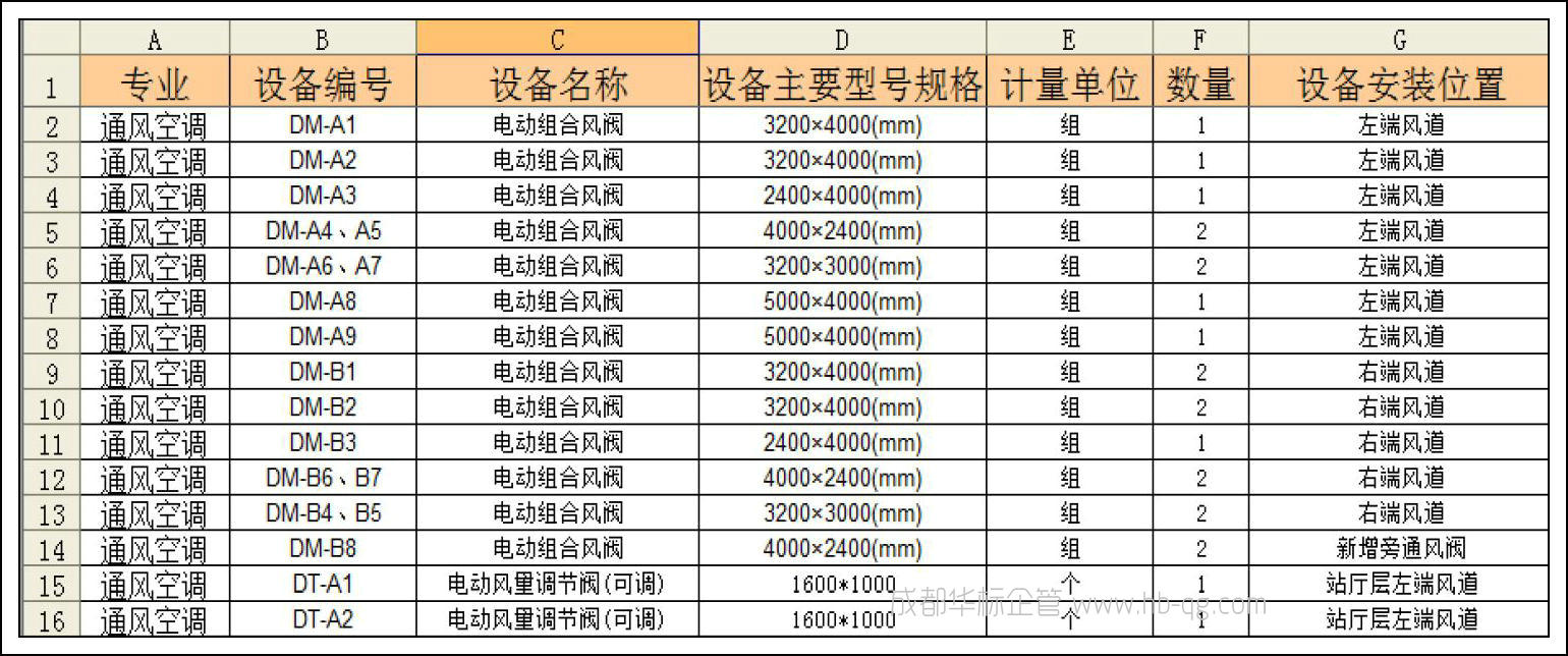 【步驟2】.編制隱蔽工程對象的位置清單(見范例),清單包括:設備編號、設備名稱、規格型號、計量單位和數量 、安裝位置。