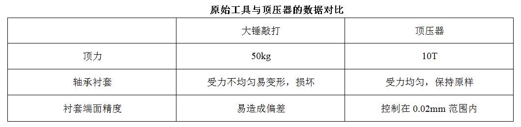 根據液壓原理進行更換軸承襯套,使襯套不易損壞,節省了材料費用。