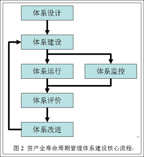 針對目前國網上海電力資產管理業務中實際存在的目標不統一、工作不協調、流程不健全、風險管理能力弱、信息系統支撐力度不足等問題,借鑒國際通用的資產全壽命周期管理理念,結合業務實際情況,設計并建設資產全壽命周期管理體系,并將主要建設內容分解為目標策略、計劃、過程管控、監測評價、改進、組織、能力、法律法規、標準制度、風險和應急、協同、信息等12項管理要求,利于體系建設的實施和運行。