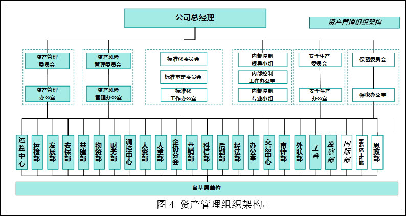 結合“三集五大”體系深化工作,在體系建設階段、體系運行階段設置資產管理組織,明確決策層、管理層、執行層職責,并與公司資產風險管理、內控等其他體系組織架構保持一致。根據資產管理組織架構,全面梳理修訂了65個部門工作標準,并根據各部門、各基層單位的資產管理職責,梳理修訂1995個崗位工作標準,確保資產管理相關崗位的職責和權限落實到位。