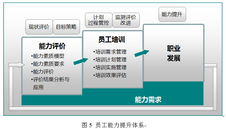 結合公司發展需求及人力資源管理需求,依據崗位工作標準中對崗位任職資格的要求,確定員工能力評估要素,構建員工能力評估模型。員工能力評估模型由隱性能力和顯性能力兩部分組成,顯性部分由資產管理理論知識能力和資產管理專業理論知識和技能組成,通過資產管理理論考試成績、上崗條件(學歷、職稱)、任職資格考試、技能等級考試、專業調考、管理培訓考核等方式對能力進行評價。隱性部分由資產管理核心素質能力和五項通用素質能力組成,于每年年初通過績效系統由員工的直接主管對其能力素質的每項要素進行評價、打分。公司每年年初根據上一年的評價結果對各層級的員工能力進行分析,提出能力提升需求,作為培訓需求的輸入,實現能力評價工作的閉環,實現員工能力的持續改進。國網上海電力已開展9853人的能力評價,并就評價結果進行分析,制定有針對性的能力提升工作方案。