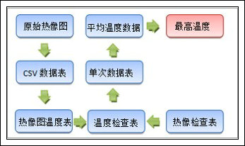 對于紅外熱像溫度數據采集工作來說,一個最重要的問題就是后期數據處理問題。一次紅外熱像溫度采集工作大概就需要拍攝總計約200張左右的熱像圖,熱像圖的分辨率是160*120,這樣就是總計19200個溫度數據。