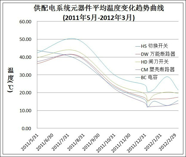 通過對所拍攝的熱像圖相關溫度的數據的提取和歸納,制作了針對公司低配室內設備熱像溫度的《標準數據庫》,為今后開展熱像檢查工作,對熱像圖中設備運行狀況建立了參照標準數據,用于比較判斷設備的運行狀態。針對每次檢查,生成《檢查報告》用于對一次熱像檢查完成后的總結報告,其中標明了設備編號、典型熱點、潛在問題等基本信息,為對熱像圖所攝的設備運行狀況的判斷提供更為直觀的判斷依據。