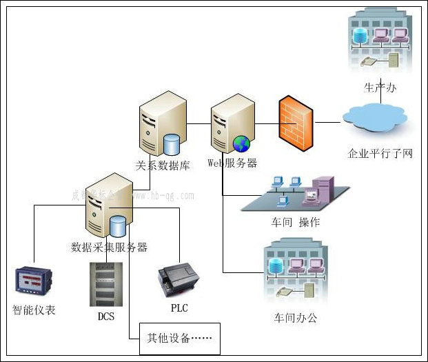 工業能耗管理中心系統是一個集成網絡通信技術、短信平臺技術、多媒體監控技術、Intranet/Internet網絡技術、Web GIS技術、Web Service軟件技術、數據庫技術等于一體的大型數據綜合管理系統。系統提供管理者、各級能耗內部用戶、瀏覽者訪問的網絡通道,搭建一個合理、高效的信息傳輸平臺、管理平臺,并建設一個良好的安全保障體系來保證本系統的安全。系統主要完成對能耗進行實時監測和分類、分項計量;能源數據可穩定、精確采集與存貯;計量數據可遠程傳輸;能夠對計量數據查詢、統計與分析。