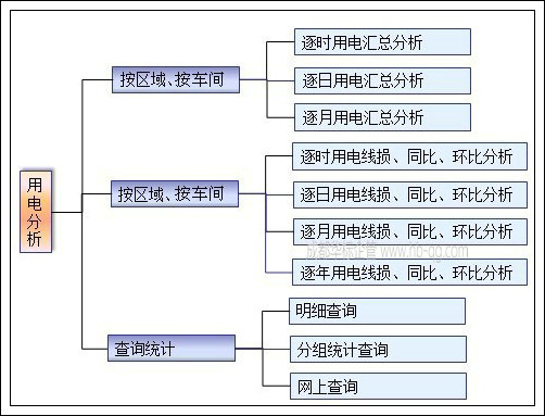 本系統目前處于綜合運行階段,已初步實現管理功能。主要包括7大功能模塊:用電模塊、用水模塊、蒸汽模塊、空壓模塊、空調模塊、報警模塊、視頻監控模塊。每個模塊分別包括以下內容: