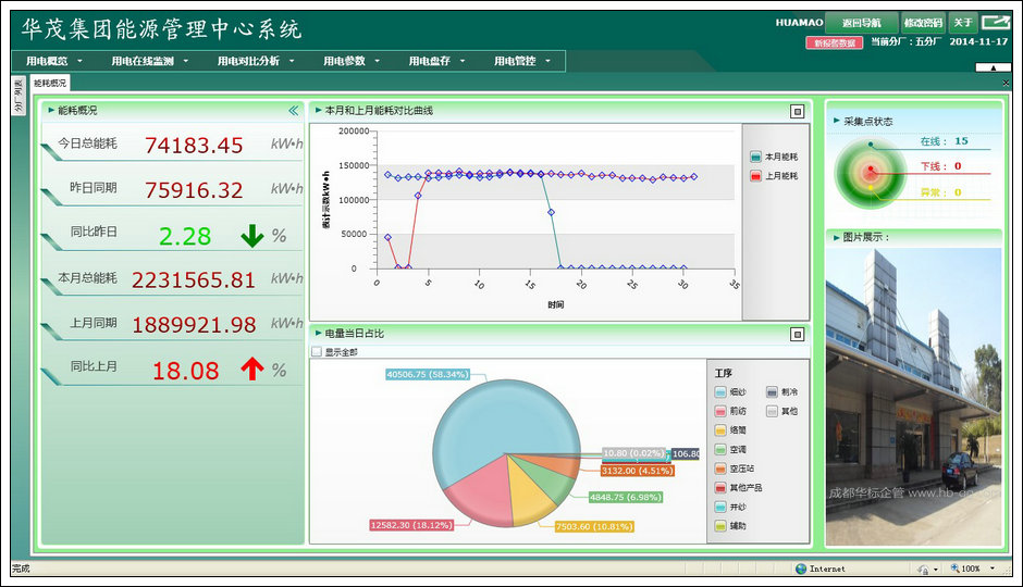 節能量計算,節能量驗證。該解決方案不僅能夠滿足華茂集團當前的需求,而且能夠隨企業的可持續發展需求的增長而拓展。利用該解決方案能夠有效降低企業因能源消耗數據統計、表單維護以及報表、數據處理而產生的費用;通過對環境監測數據的在線分析,實時有效的識別資源節約、環境改善機會,幫助企業進行能源消耗的實時監測、準確統計和詳細預測,最終為企業節能降耗和自我完善提供確鑿的數據基礎和有力的決策支持。