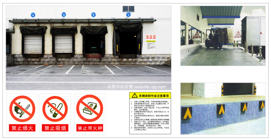 ——裝卸平臺應有車輛、貨物的定置線或區域標志;