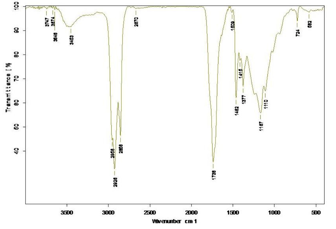 對(duì)膠狀物進(jìn)行紅外組分分析, 結(jié)果表明該樣品為二聚亞油酸/甘醇共聚物。