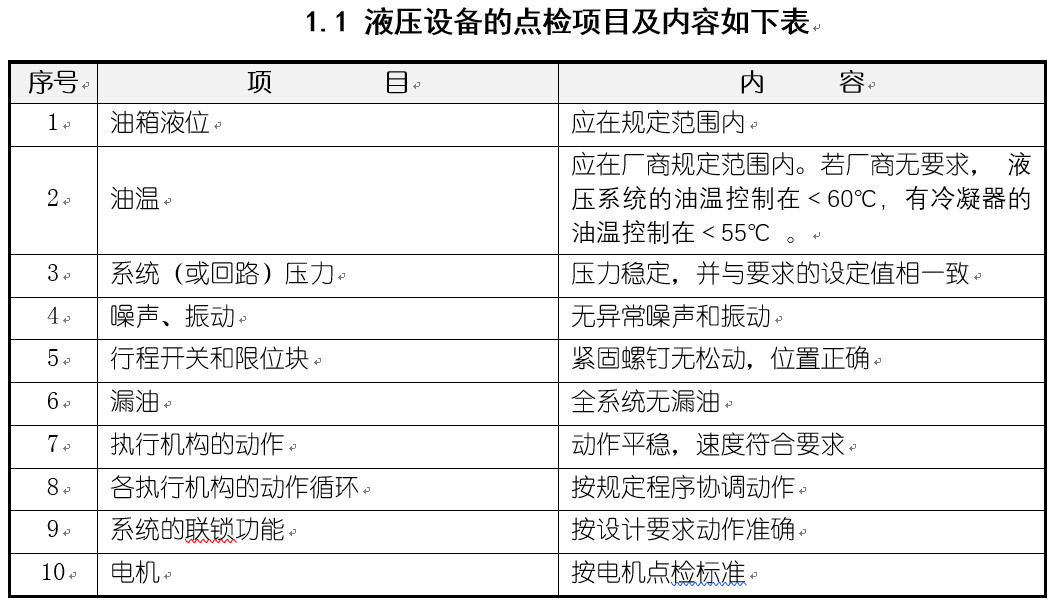點檢是設備維修的基礎,通過點檢可以把液壓系統中存在的問題排除在萌芽狀態,還可以為設備維修提供第一手資料。從中可確定修理項目,編制檢修計劃。點檢的主要項目,如: