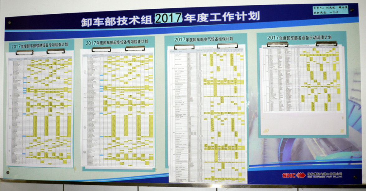 注2:國投曹妃甸港口的年度計(jì)劃看板,不僅有年度設(shè)備維保的計(jì)劃,還有設(shè)備專項(xiàng)檢查計(jì)劃、年度設(shè)備手工潤滑計(jì)劃、年度設(shè)備油品檢測計(jì)劃。