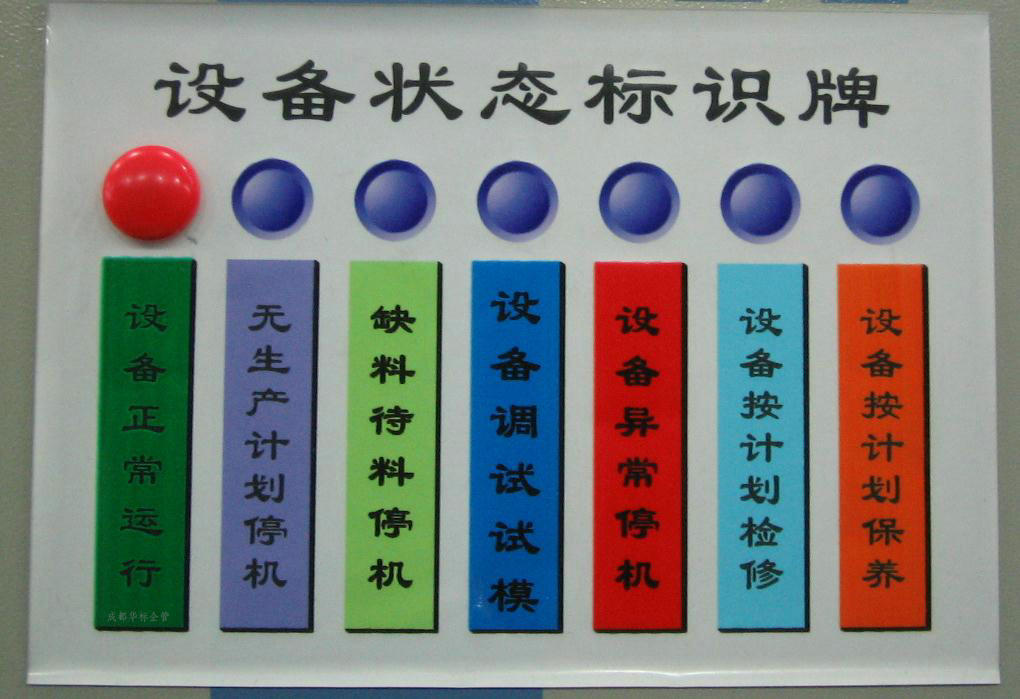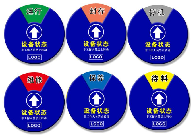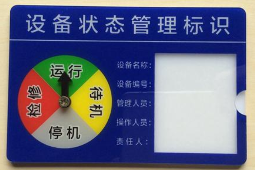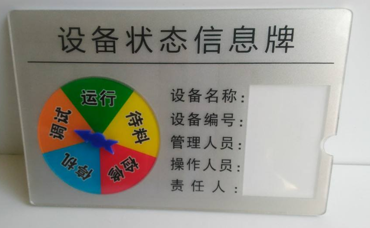 5.設備狀態:標識牌有圓形綜合的,有獨立的,具體根據設備而定。可購買或自制。