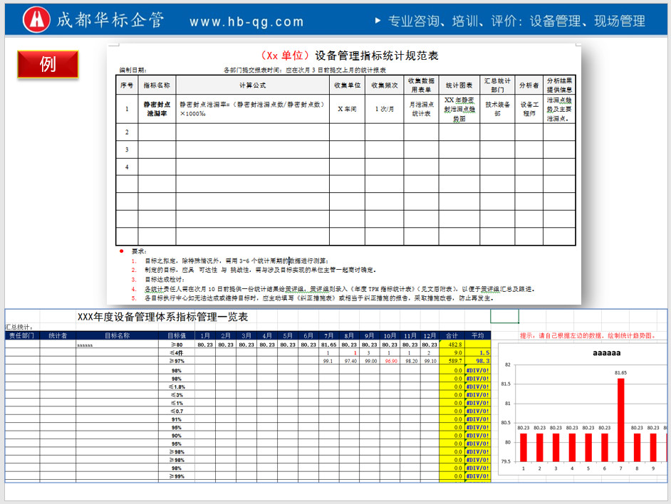 注4:設備狀態類指標,如:功能完好率、精度精確率、外檢合格率、設備潤滑劑消耗指數、潤滑不良率、機械密封平均壽命、軸承平均壽命、主機配件平均壽命等。