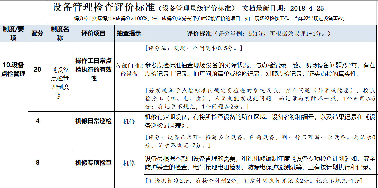 從這可看出,最大的不同是:設備管理是先增修技術標準,教會員工會做,管理制度在后,并通過執行檢查糾偏與考核,確保每項工作做實到位,這就是與推進ISO體系最大的區分。