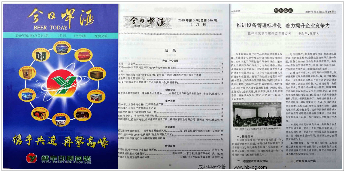 《今日啤酒》2019年第3期,文章原名:推進設(shè)備管理標準化 著力提升企業(yè)競爭力