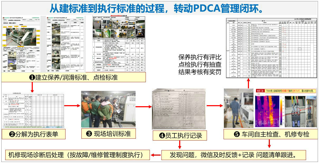 1)問題整改。指老師輔導(dǎo)檢查、推進辦監(jiān)督檢查、車間自主檢查、企管監(jiān)督檢查等發(fā)現(xiàn)的問題,設(shè)備專業(yè)的由設(shè)備組牽頭組織整改,車間的由車間主管組織整改,跨部門的或超出部門權(quán)限或能力改善的,由總裁辦組織整改。