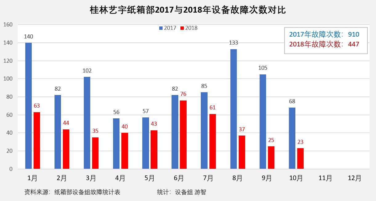 (↑圖9:紙箱部2018與2017年設(shè)備故障次數(shù)對比)