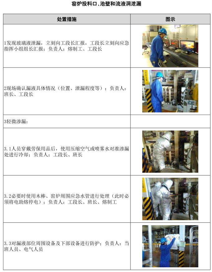 3.2.1窯爐玻璃液泄漏應急處置