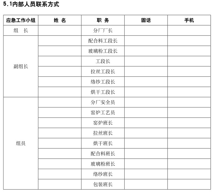 泰山玻纖維生產安全事故現場處置方案