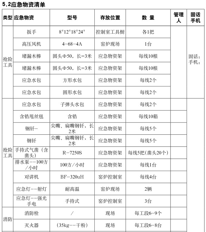 5.2應急物資清單