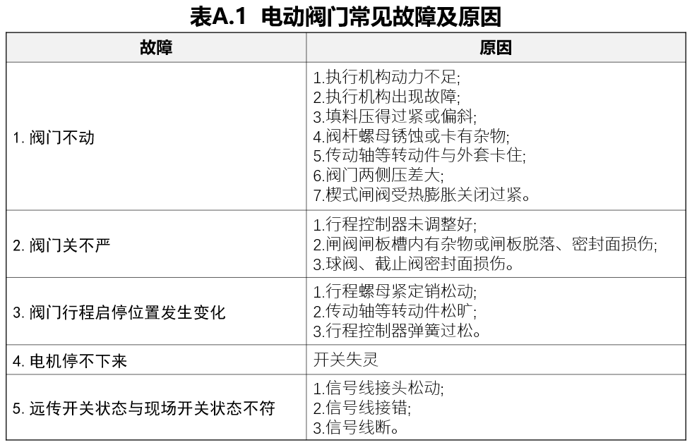 a)電動閥門常見故障及原因分析參見附錄A。