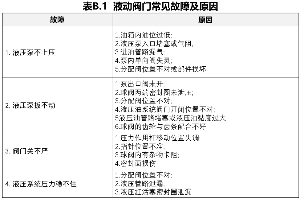 b)液動閥門常見故障及原因分析參見附錄B