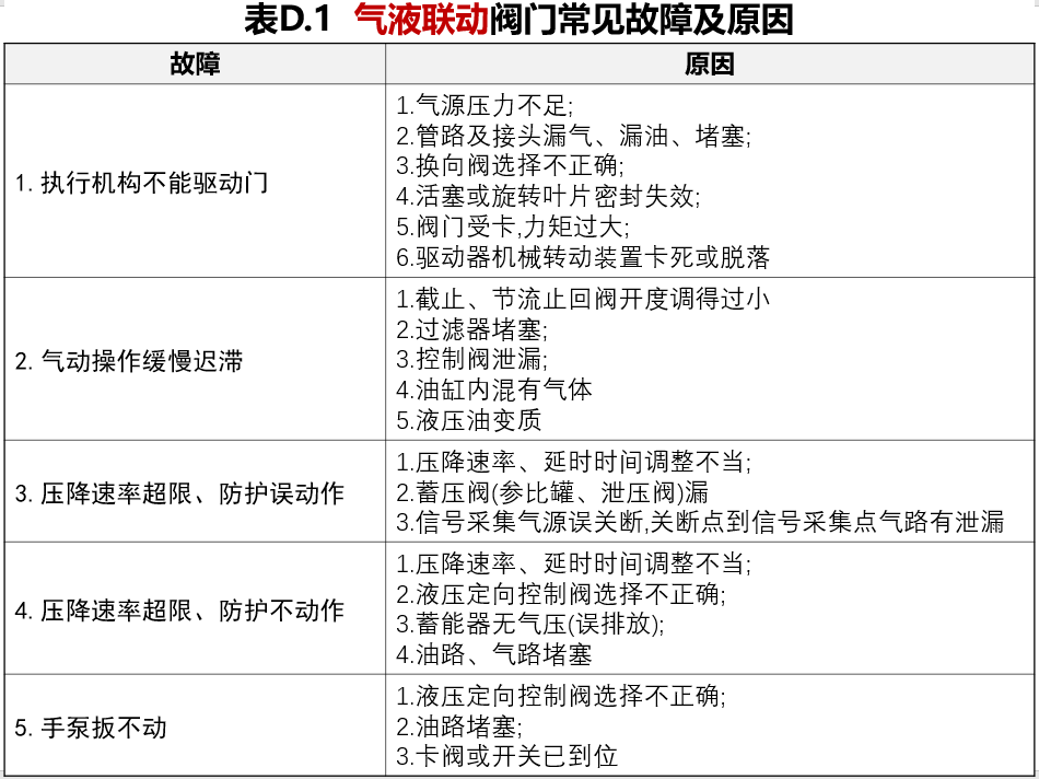 d)氣液聯動閥門常見故障及原因分析參見附錄D