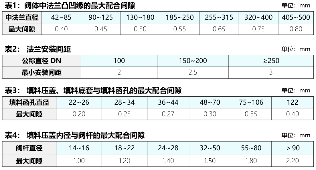 3.閥體中法蘭凸凹緣的最大配合間隙應符合表1的要求