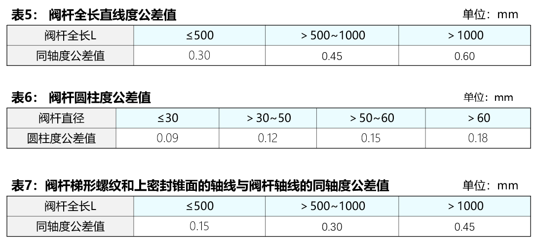 2.閥桿全長直線度公差值應符合表5的要求。