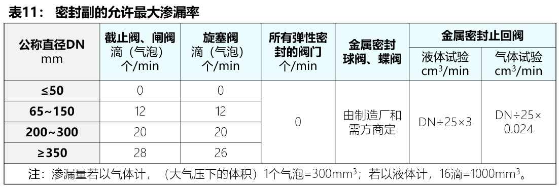 b)密封試驗保壓時間應符合表10的要求,密封副的允許最大滲漏率應符合表11的要求。