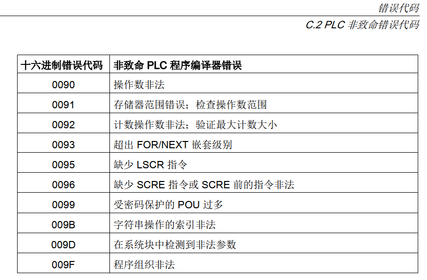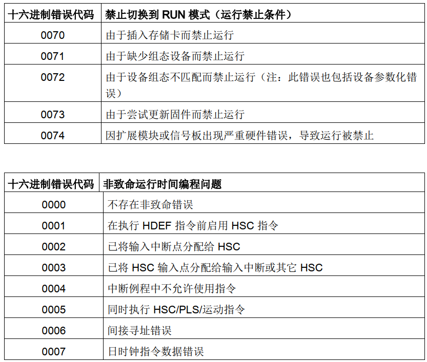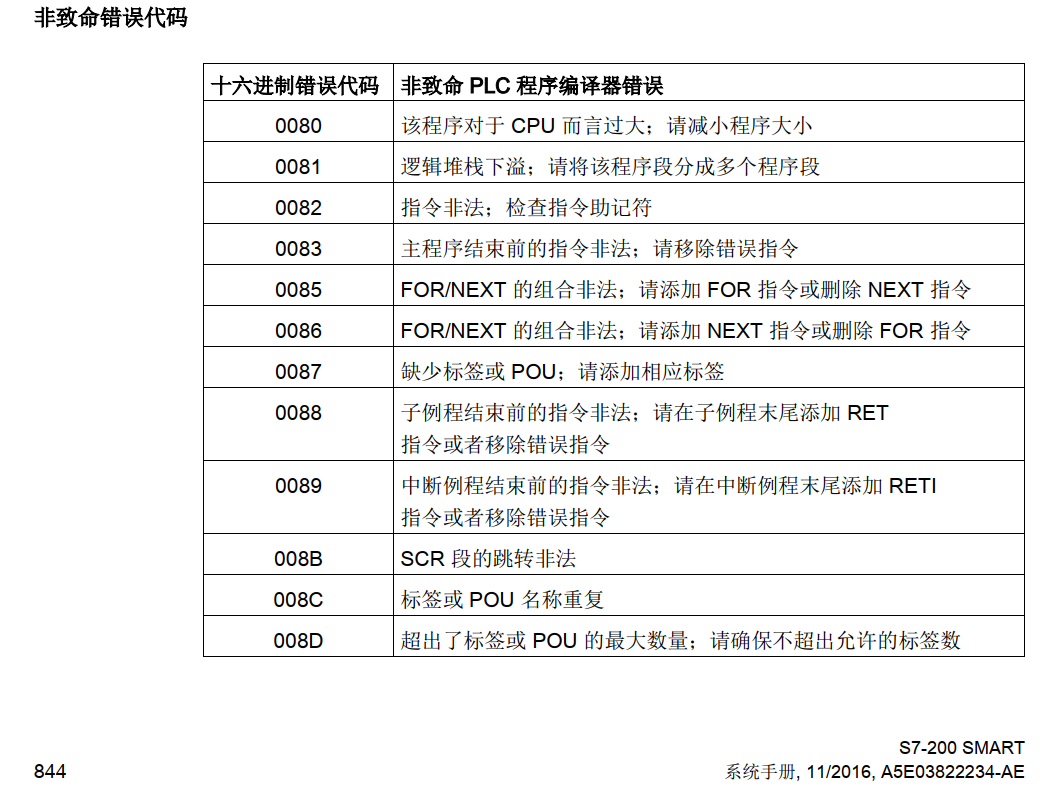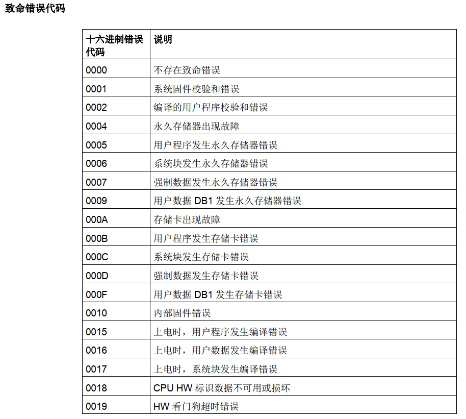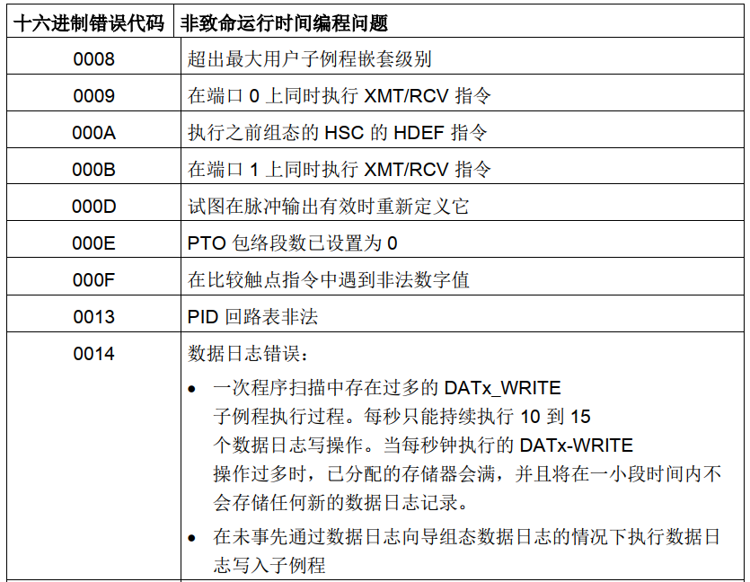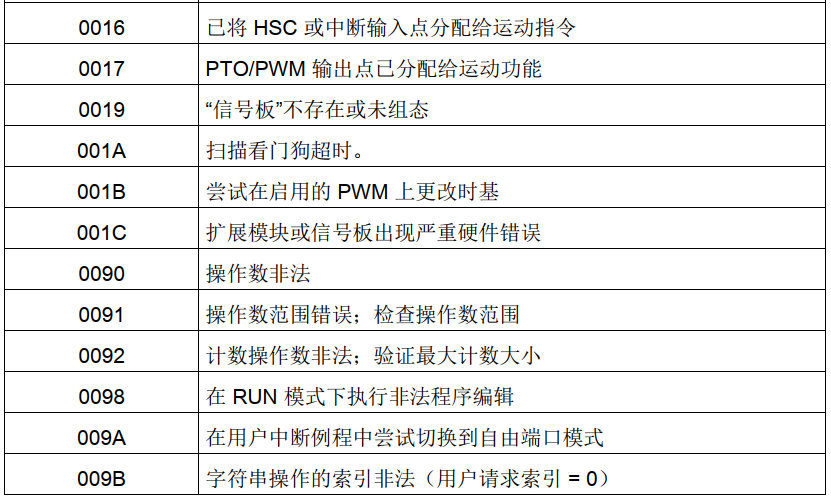 S7-200的每個錯誤代碼都代表相應的含義,具體代碼,參考西門子《 SIMATIC S7-200 SMART 系統手冊》中的“錯誤代碼”。