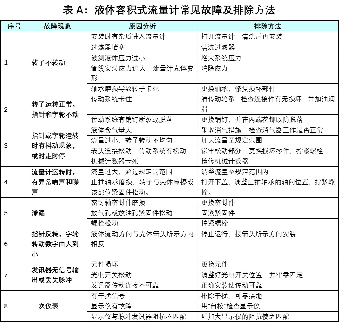 7.流量計常見故障及處理方法參見附錄A:故障及處理方法。