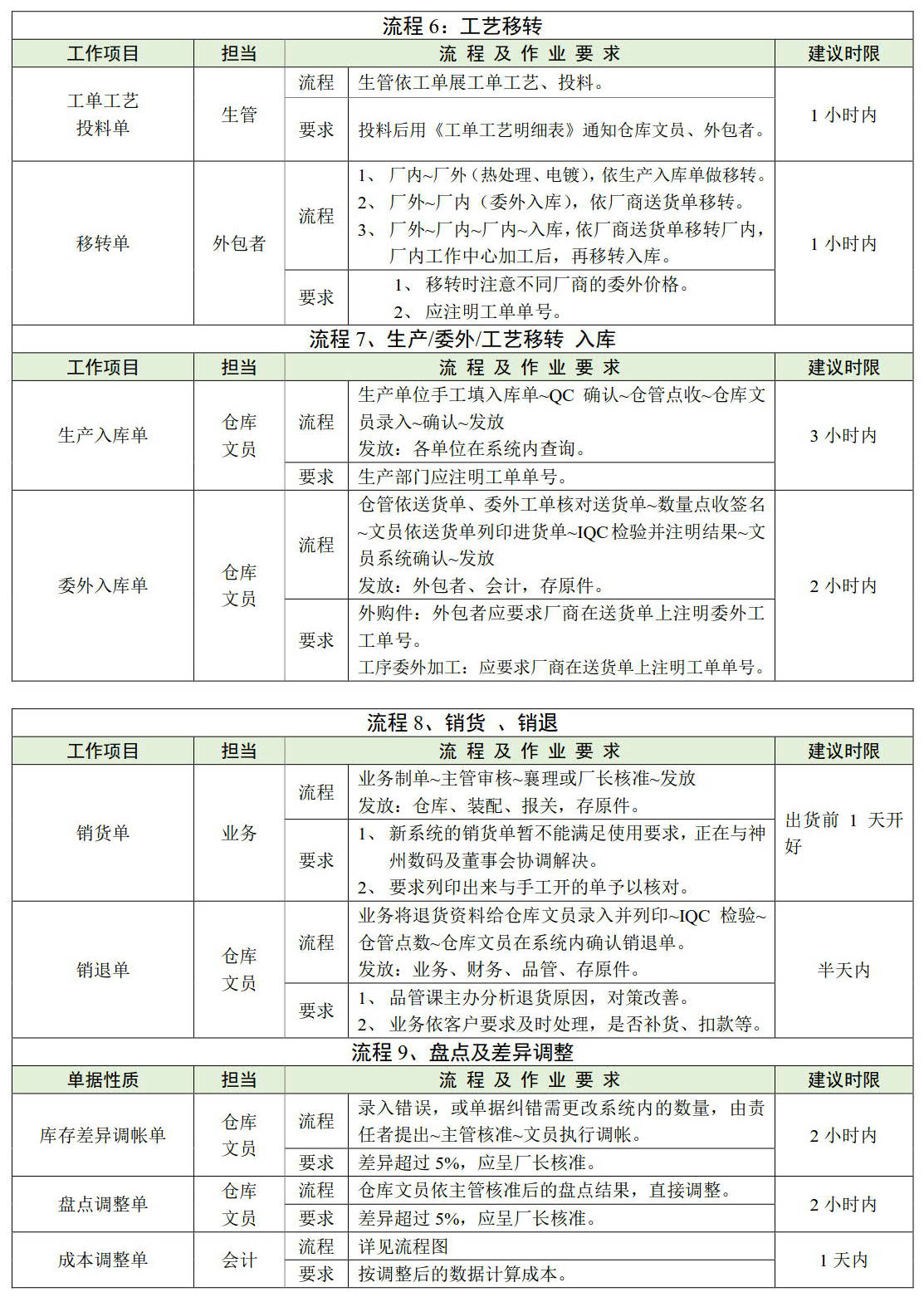 3、部門內或部門之間的移動單據,必須追求時效性;原則是“當日單據,當日完成。”