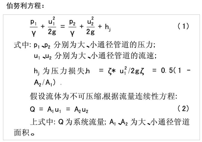 3.1管徑、壓力、流速的關(guān)系:可用流體力學(xué)的伯努利方程計算得出,如果管道管徑突然變大,流量不變的情況下,管道壓力變小。管徑變大,壓力變小,流速變小。管徑變小,壓力增大,流速增大。