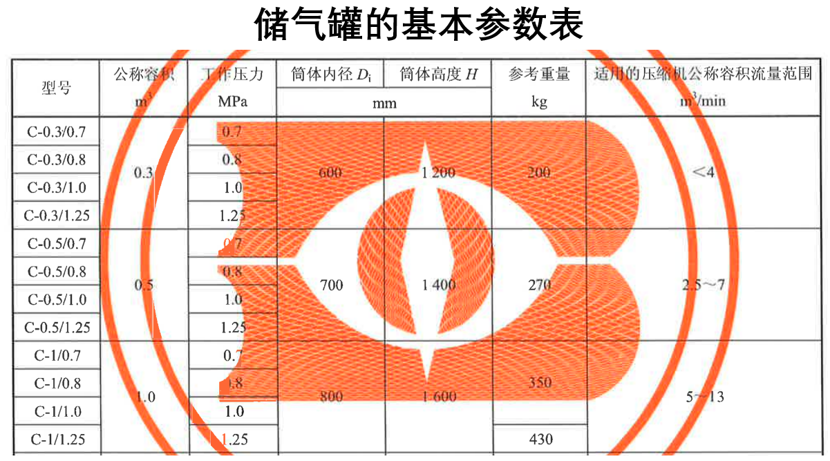二、儲氣罐選型用“儲氣罐的基本參數表”