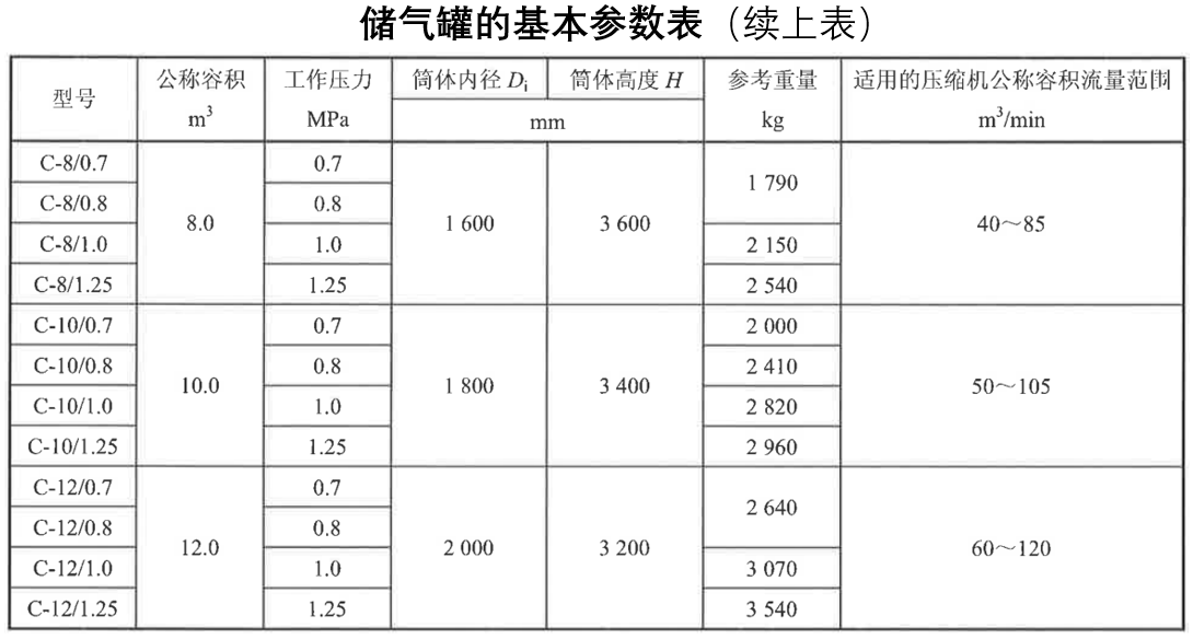 提示2:通常儲氣罐的公稱容積:0.3m3、 0.5m3、 1m3、 2m3、 3m3、 4m3、 6m3、 8m3、 10m3、 12m3