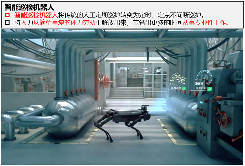 例2:西氣東輸的輸氣公司智能運維。對輸氣站場集中巡檢與監(jiān)視管控,對設(shè)備進行動態(tài)監(jiān)測與預(yù)警,利用SCADA系統(tǒng)自動控制和巡檢系統(tǒng)自動感知,將智能巡檢機器人、站場泄漏全面監(jiān)測(氣體泄漏定位定量檢測、儀表閥門識別/圖形識別技術(shù)、熱成像檢測、超聲波檢測)、壓氣站一鍵啟停、流量計智能檢定等工作,實現(xiàn)智能運維。人工聯(lián)合巡檢+重點巡檢(應(yīng)用PAD、人員卡、wifi無線基站,記錄和票卡電子化),集中監(jiān)視采集站關(guān)鍵工藝設(shè)備的報警數(shù)據(jù),對設(shè)備狀態(tài)進行監(jiān)視(火氣系統(tǒng)、管道保護系統(tǒng)(管道風險智能管控)、光纖預(yù)警感知、地質(zhì)災(zāi)害預(yù)測預(yù)警、腐蝕控制智能預(yù)測、安防系統(tǒng)、緊急停站ESD、工藝系統(tǒng)、計量系統(tǒng)、自動化系統(tǒng)、通信系統(tǒng)、閥室報警系統(tǒng))、壓縮機智能監(jiān)測與診斷、流量計與空壓機遠程診斷、確實可提搞對設(shè)備缺陷、故障的預(yù)測預(yù)警了能力,提高風險管控能力,這些智能狀態(tài)檢測或預(yù)測維護系統(tǒng),使站場的工作重心由運行監(jiān)視、現(xiàn)場巡檢,轉(zhuǎn)變到設(shè)備設(shè)施維護檢修上。