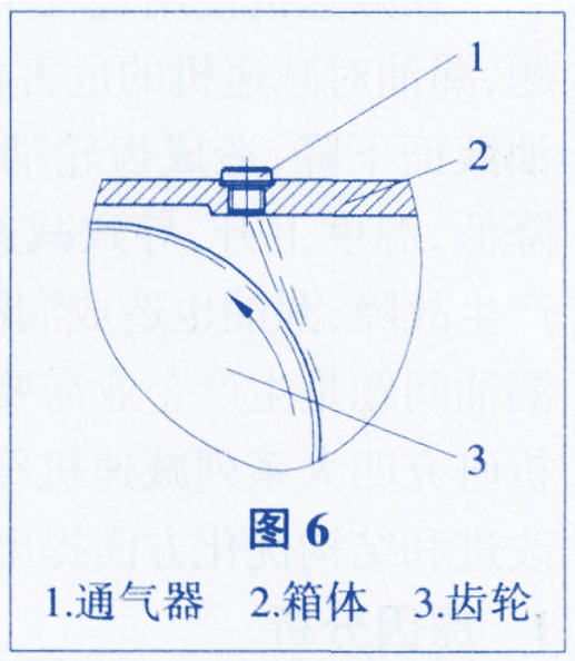 通氣器漏油的主要原因有通氣器結構不合理和通氣器位置選擇不當,通氣器位置如果選擇不當,會在通氣器處持續不斷地產生滲漏油,如圖6。