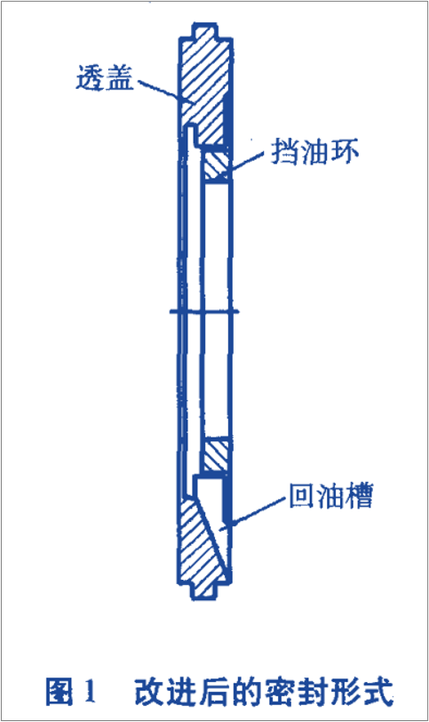 (2)減速機在箱體中的潤滑油被旋轉的齒輪帶起,飛濺到上箱體的內壁上后沿內壁流到軸承位處,以及齒輪咬合擠壓后的潤滑油在對軸承進行潤滑。越來越多的潤滑油積聚在軸承與端蓋間的間隙上,若油溝上的回油孔回油不暢,極易堵塞,回油作用難以發揮,造成潤滑油泄露。