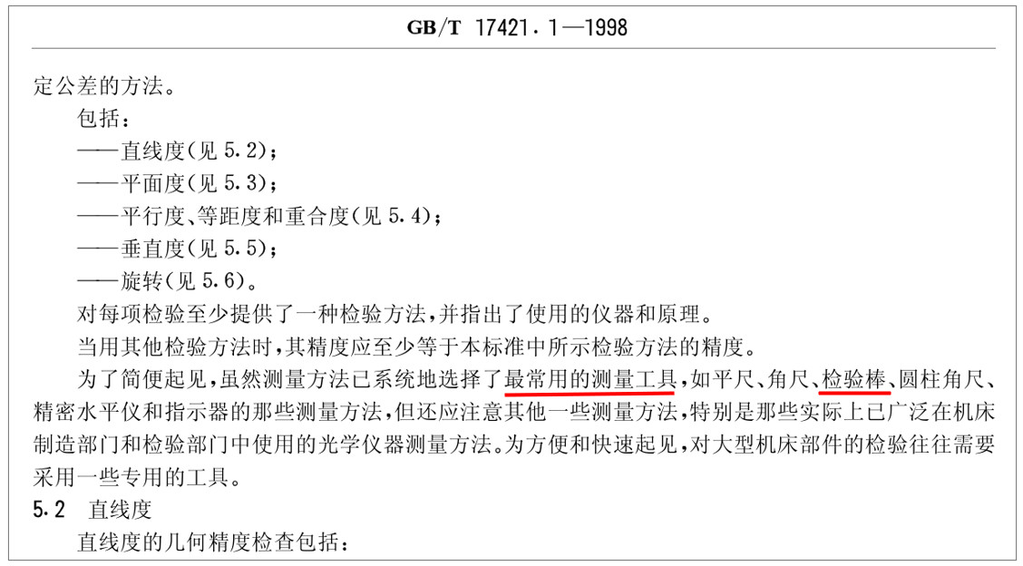 春哥好!我晚上抽時間幫你查詢、研究了5個標準,結論是:數控機床精度檢測用的檢驗棒,屬于測量工具,依據的標準有2個: