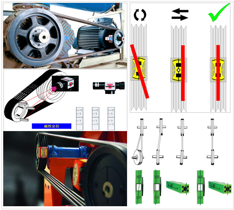 當確定了三角帶的平行度在推薦范圍內,一定要得到具體的量化值,必須把軸的平行度和帶輪的平行度綜合考慮在一起。最后的測量的數值應該在皮帶生產商推薦的范圍之內。